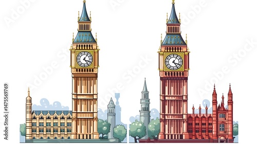 © samantha, Fototapeta premium Abstract Dotted Shape Big Ben and Moscow Vacation Journey Car Illustration