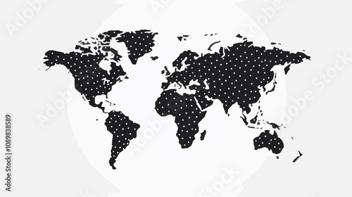 © Zoni, Obraz premium Abstract Dotted World Map Vector Background in Black