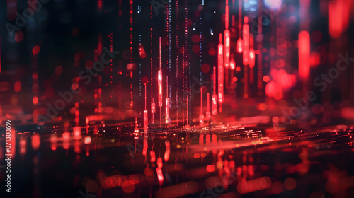 Fototapeta premium Abstract downward red forex candlestick hologram on dark background....