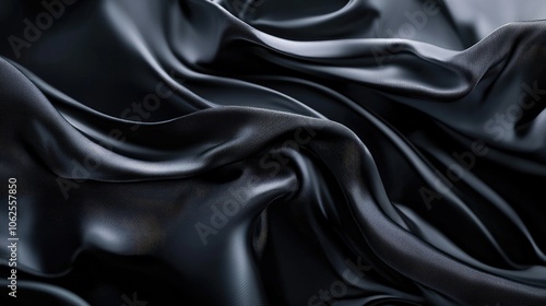 © chesleatsz, Obraz premium Abstract Draped Black Fabric with Textured Surface
