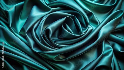 Obraz premium Abstract Draped Teal Satin Fabric Texture with Smooth, Flowing Curves and Elegant Ripples