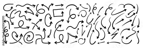 © top dog, Naklejka premium Abstract drawing black arrow collection. Set of doodle arrows