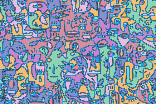 Obraz premium Abstract drawing of black lines painted in different colors.Seamless drawing.