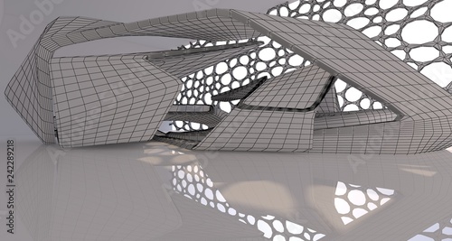Obraz premium Abstract drawing white interior multilevel public space with window. 3D...