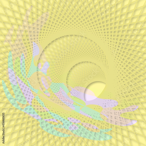 © Марина Блазаренко, Obraz premium Abstract drawing with many yellow mesh structures.3d.