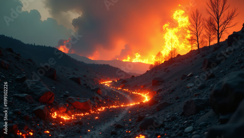 © huaomanz, Fototapeta premium Abstract Duality of Burned Land and Sprouting Greenery