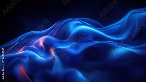 Obraz premium Abstract dynamic blue fabric folds, dark background, glowing light. Possible...