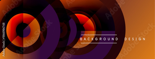 Obraz premium Abstract dynamic composition. Concentric circles, gradients, orange, purple hues create modern visual effect. Background design element.