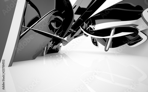 Obraz premium Abstract dynamic interior with black smooth objects . 3D illustration and...
