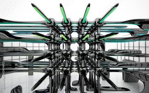 Obraz premium Abstract dynamic interior with brown and colored gradient smooth objects. 3D...
