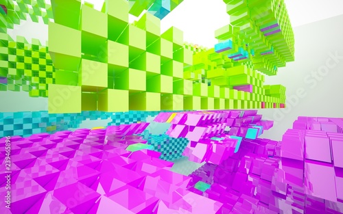 Naklejka premium Abstract dynamic interior with gradient colored objects. 3D illustration and rendering