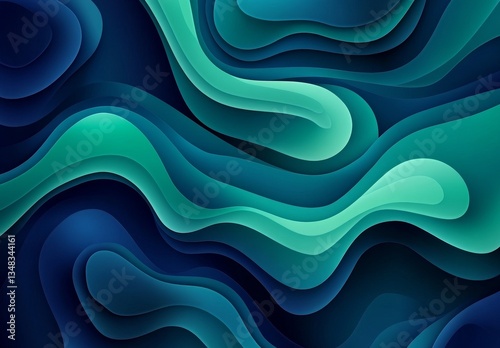 Obraz premium Abstract, dynamic, layered, flowing curves in teal and navy. Deep, textured, 3D-like effect. Oceanic, liquid, vibrant, modern design