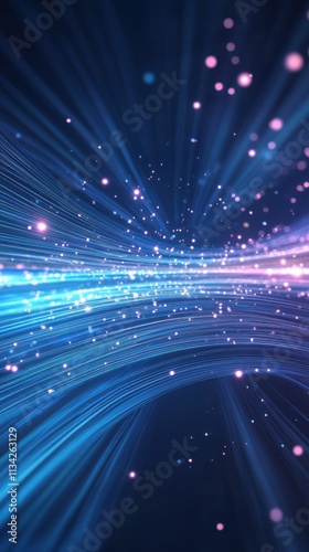 © Wanida, Obraz premium Abstract Dynamic Light Waves with Glittering Particles on a Dark Background Creating a Sense of Depth and Movement in a High-Tech Atmosphere