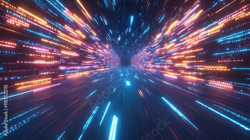 © AI_Nusantara, Naklejka premium Abstract Dynamic Neon Lights Tunnel Background