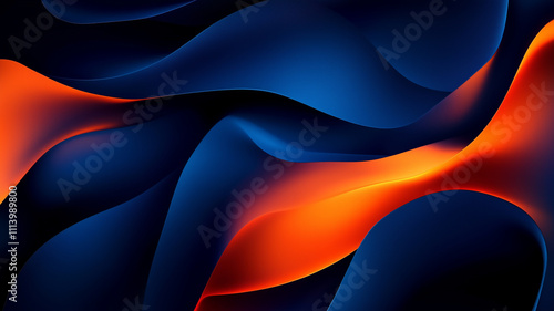 © Nethmi, Obraz premium Abstract Dynamic Orange and Blue Waves on Black Background