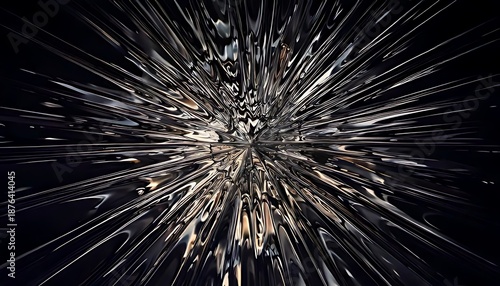 Obraz premium Abstract, dynamic visual. Radiant center, bursts outwards. Dark palette,...