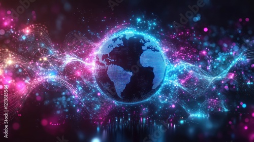 © artbot, Obraz premium Abstract Earth with colorful light wave patterns