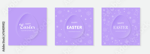 Fototapeta premium Abstract Easter backgrounds set. Concept of a paper cut egg, hand drawn...