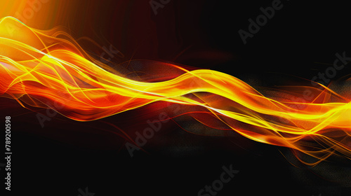 © ภวัต สายวงค์, Obraz premium Abstract effect single orange-yellow line Curved shape on black background.