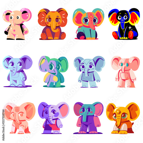 Obraz premium abstract elephant colors cartoon vector set in different emotion isolated on white background - Vector illustration