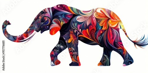 © NpicArt, Fototapeta premium Abstract Elephant Silhouette with Colorful Floral Patterns