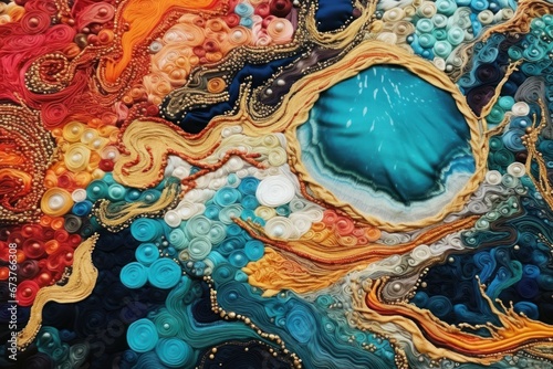 Fototapeta premium Abstract embroidery with a maritime theme, a beautiful background with ocean-colored embroidery, digital abstract handicraft.
