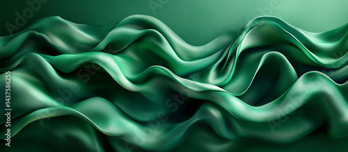 © Formasi, Obraz premium Abstract emerald green silk fabric draped in flowing waves.