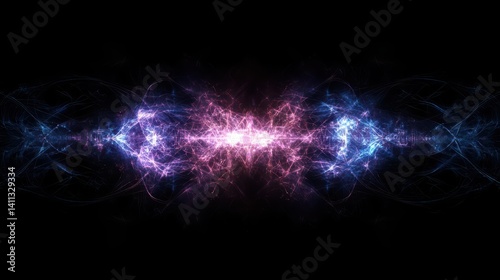 Fototapeta premium Abstract Energy Beam with Blue and Purple Light on Black Background