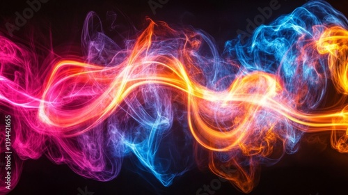 © AsterionMad, Fototapeta premium Abstract Energy Flow: Vibrant Pink Blue Orange Swirls on Dark Background