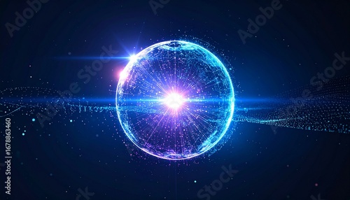 © photostockatinat, Obraz premium Abstract energy sphere emitting a radiant light against a dark background