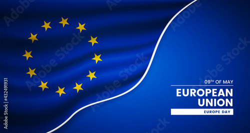 Fototapeta premium Abstract europe day of European Union background with elegant fabric flag and typographic illustration