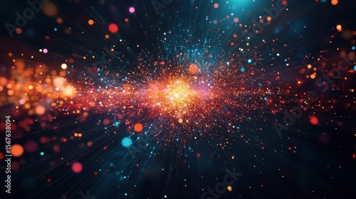 © muhammad, Fototapeta premium Abstract explosion of colorful particles in dark space