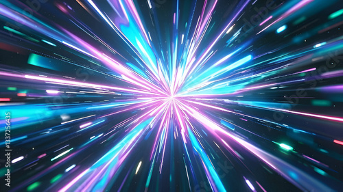 Fototapeta premium Abstract explosion of holographic light, with colors shifting between pink, blue, and green