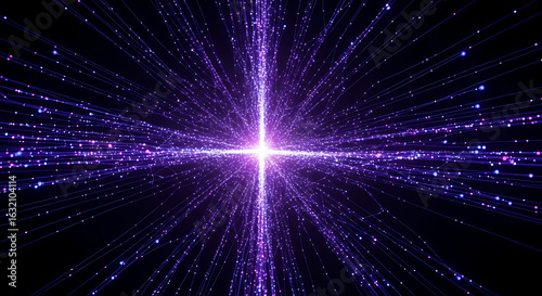 Fototapeta premium Abstract explosion of purple light particles radiating from a bright center...