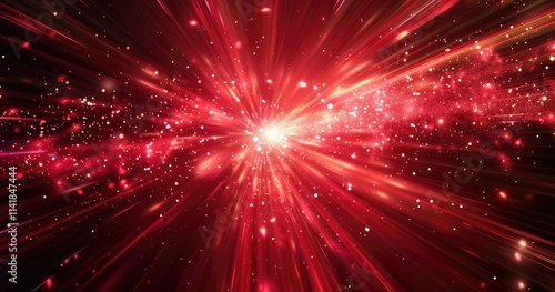 Fototapeta premium Abstract explosion of red light and particles, creating a dynamic cosmic scene.