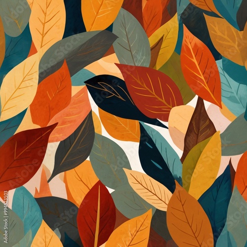 Obraz premium Abstract expressionist painting of autumn leaves, focusing on texture and...