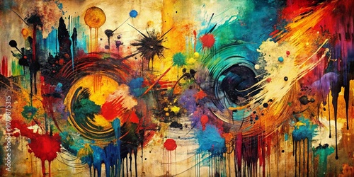 Obraz premium Abstract Expressionist Painting with Bold Colors and Dripping Strokes on a...