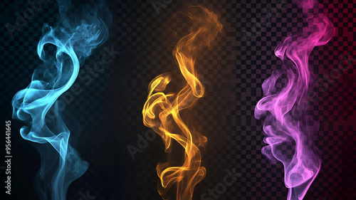 Fototapeta premium Abstract Expressions: A Dynamic Collection of Flames, Textures, and Celestial...
