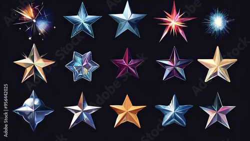 Fototapeta premium Abstract Expressions: A Dynamic Collection of Flames, Textures, and Celestial...