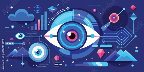 © Safia Sultana, Obraz premium Abstract eye with geometric shapes and data visualization elements on a dark blue background design style