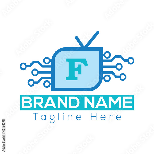 © Iqra, Fototapeta premium Abstract F letter modern initial Tech lettermarks logo design Television logo vector design template