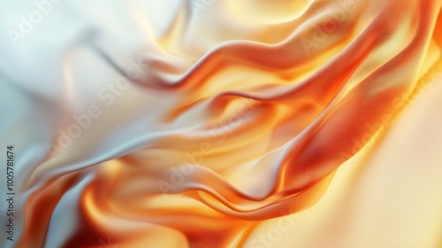 © putri syakilla, Obraz premium Abstract fabric texture with flowing waves in warm orange and soft white tones.