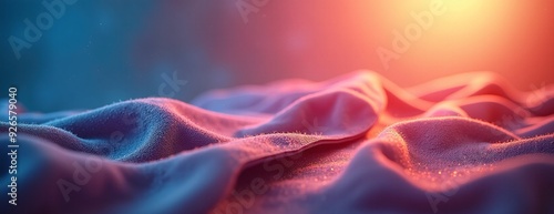 © Yury, Obraz premium Abstract fabric waves in vibrant blue and orange creating dreamy atmosphere