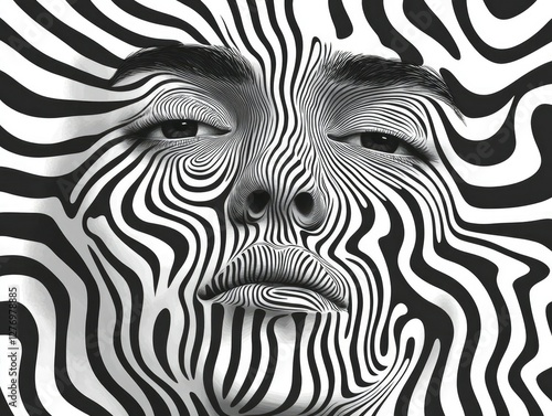 Obraz premium Abstract Face: Black & White Swirls, Optical Illusion Art
