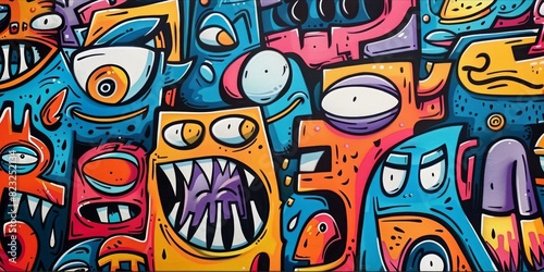 Obraz premium Abstract face cute monsters cartoon character in kawaii doodle style.