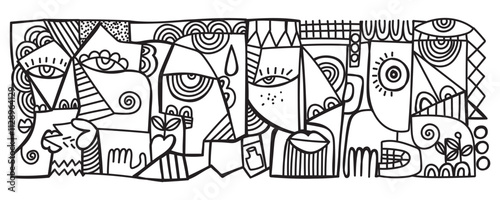 © Suryadi, Fototapeta premium Abstract face portrait geometric decorative outline doodle hand drawn vector illustration. Isolated on white background. Aesthetid design for art print, wall art and decoration.