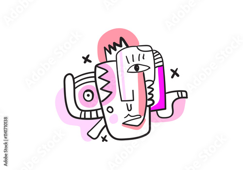 Obraz premium Abstract face shape. Cubism painting style. Contemporary Hand Drawn Vector Illustration.