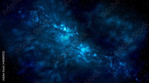 © MiaStendal, Naklejka premium Abstract fantastic space of the universe. Space background with nebula and stars. Dark space background with an unknown planet, flashes of light in space. 3d illustration