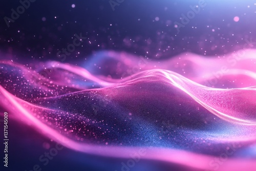 © Vasyl, Fototapeta premium Abstract fantasy illustration of pink energy waves floating in deep space background