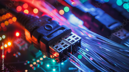 Obraz premium abstract Fibre optics carrying data through the internet.communication,...